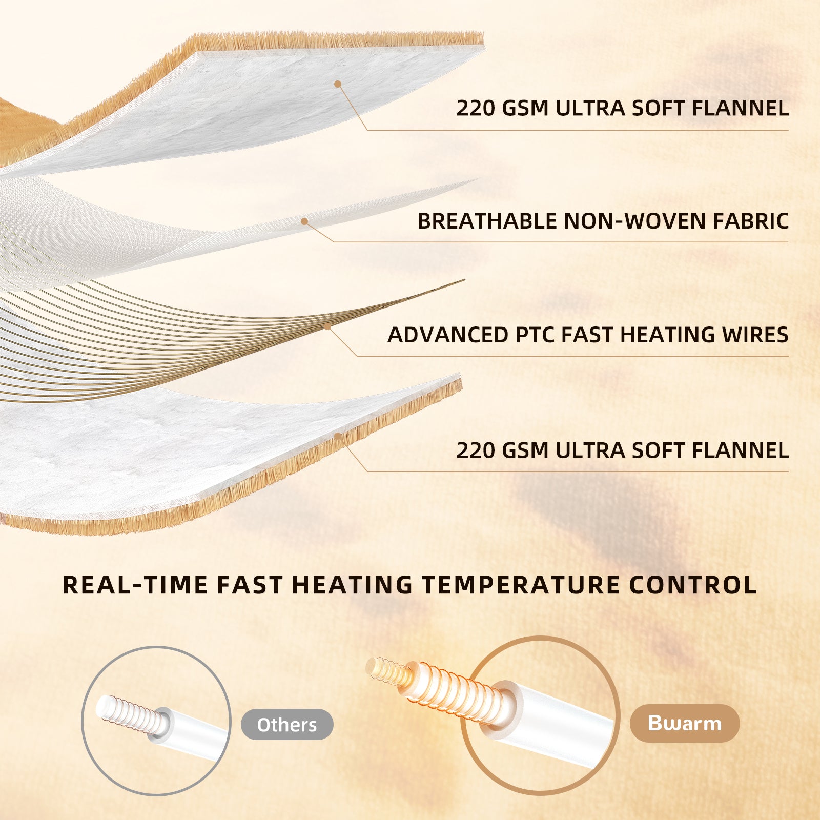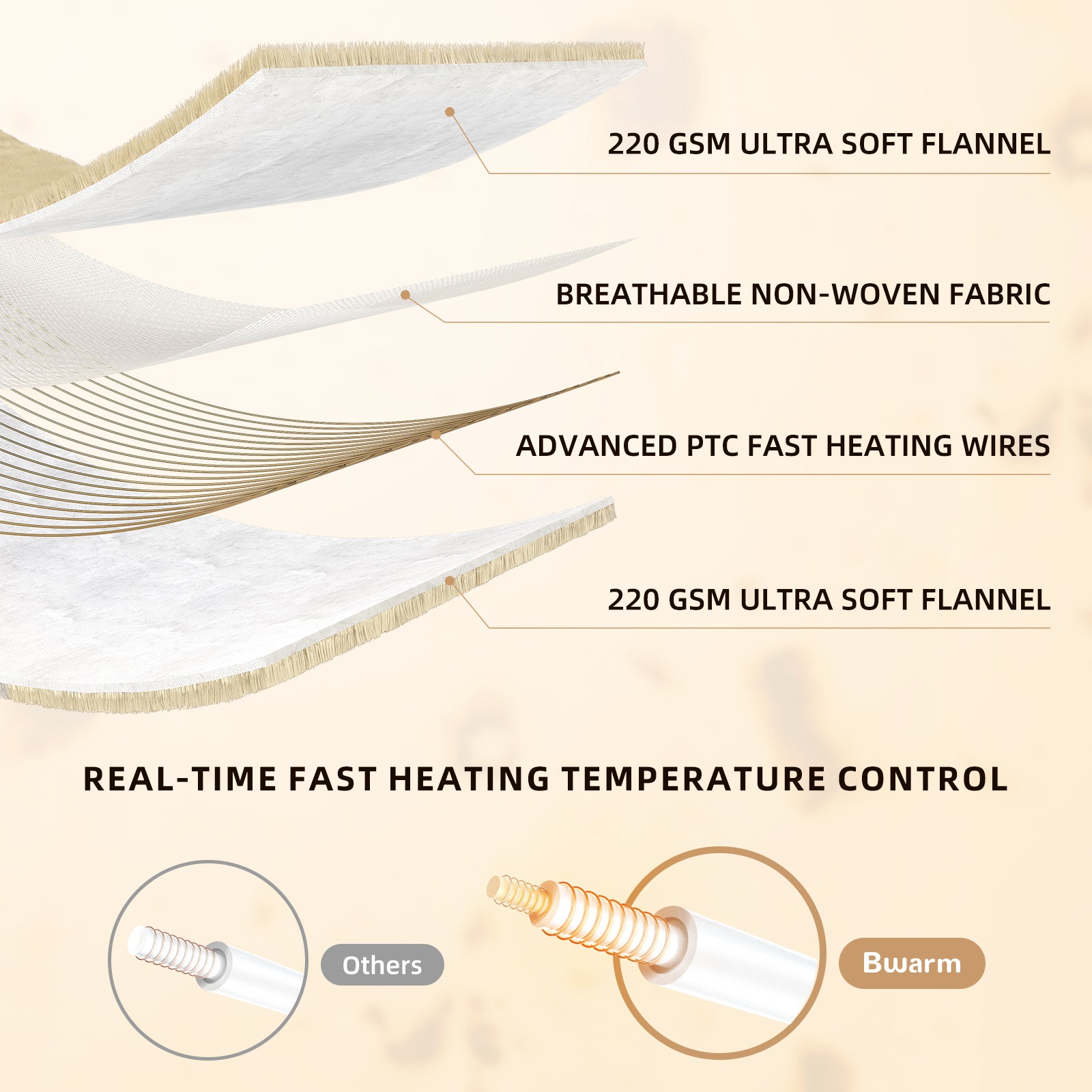 LUXUS & KOMFORT: Hergestellt aus 2 x 220 g/m² Flanellvlies für ultimative Wärme und Weichheit. Der ultradünne Heizdraht bietet gemütliche, gleichmäßige Wärme und ist pflegeleicht in der Maschine waschbar.