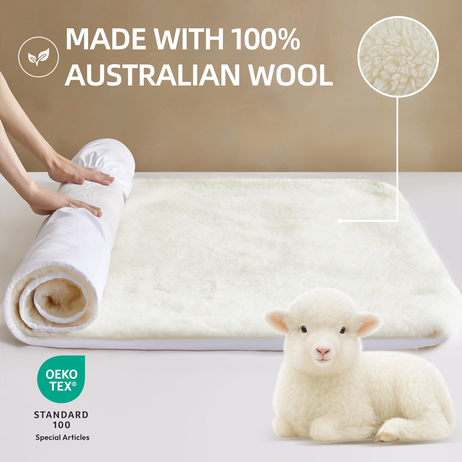 • Brushed into an approximately 1.2" plush wool pile for breathable comfort and balanced support