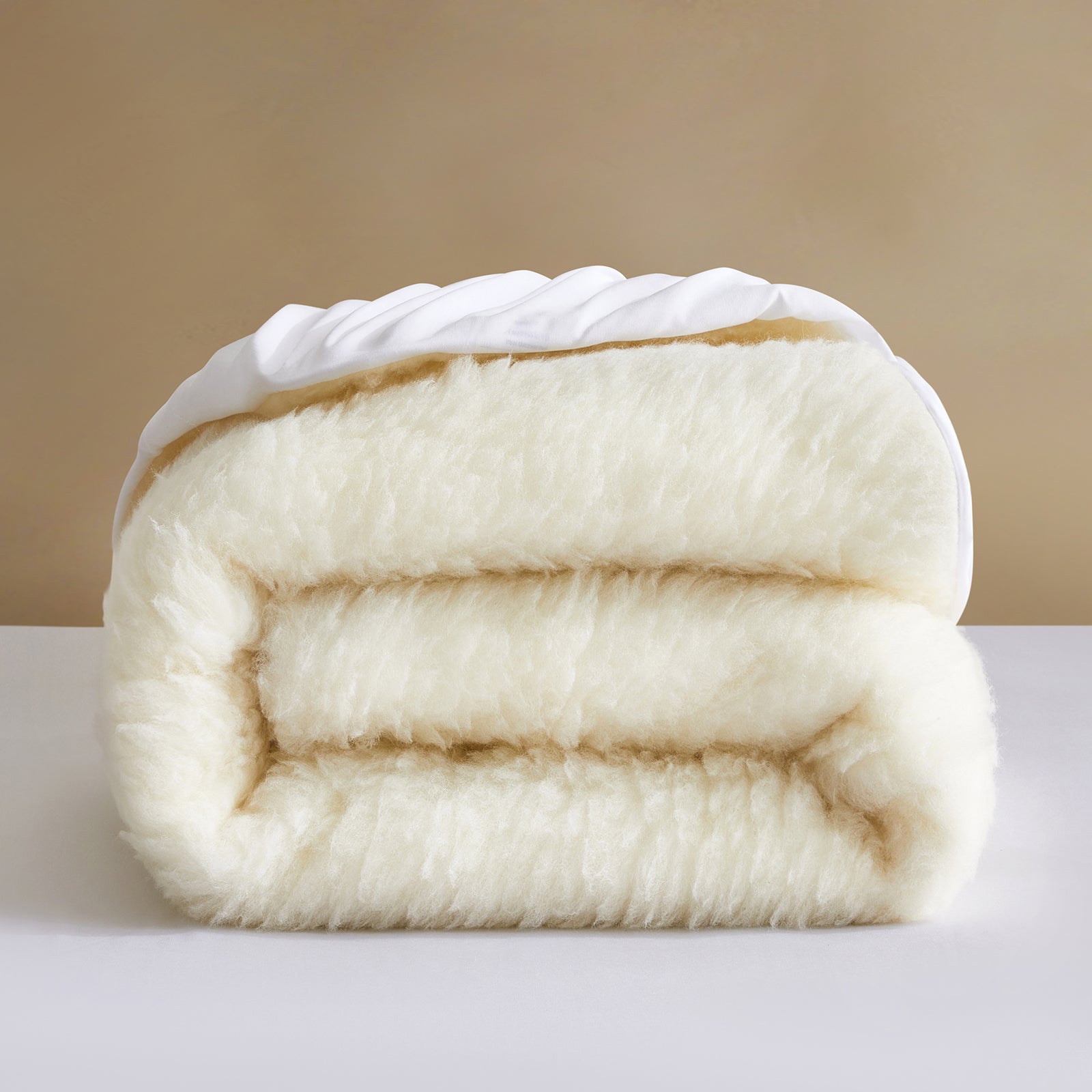 Crafted from high-loft Australian merino wool, the fibres are brushed into an approximately 1.2" plush wool pile, creating breathable, balanced comfort and gentle support. This mattress pad naturally helps regulate temperature and manage moisture, supporting a dry, comfortable sleep surface across seasons. Naturally hypoallergenic and resistant to dust mites, wool is a preferred material for those who value natural materials, refined comfort, and a cleaner sleep environment.