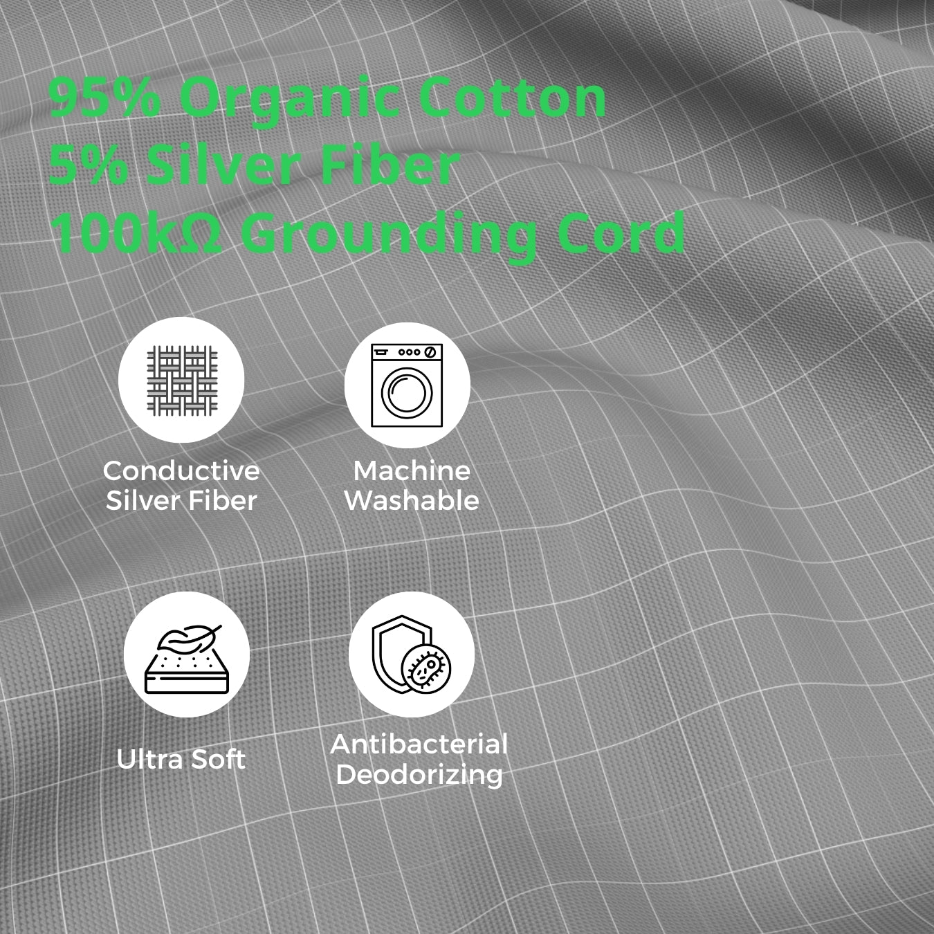 Made with 95% premium organic cotton and 5% conductive silver fiber — soft, breathable, and designed for effective grounding.